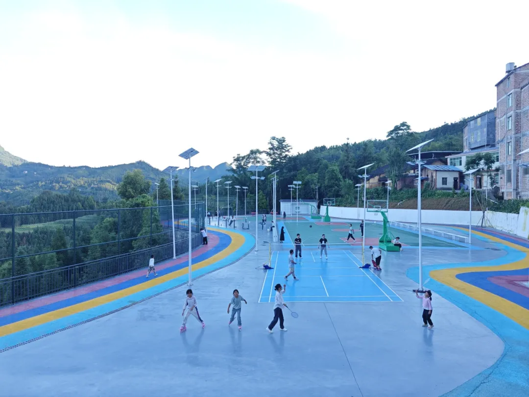 今年5月,球场终于建成了。四色跑道像条彩带绕着场地,标准化篮球场、气排球场、健身器材区一应俱全。灯光球场亮起来那天,骆大妈和姐妹们穿着统一的舞服,在音乐里舒展地旋转,脸上的笑容比灯光还亮;小伙子们在篮球场上挥洒汗水,欢呼声震得灯光都似在摇晃;老爷爷牵着孙子的手,在健身器材旁慢慢教他怎么使用……